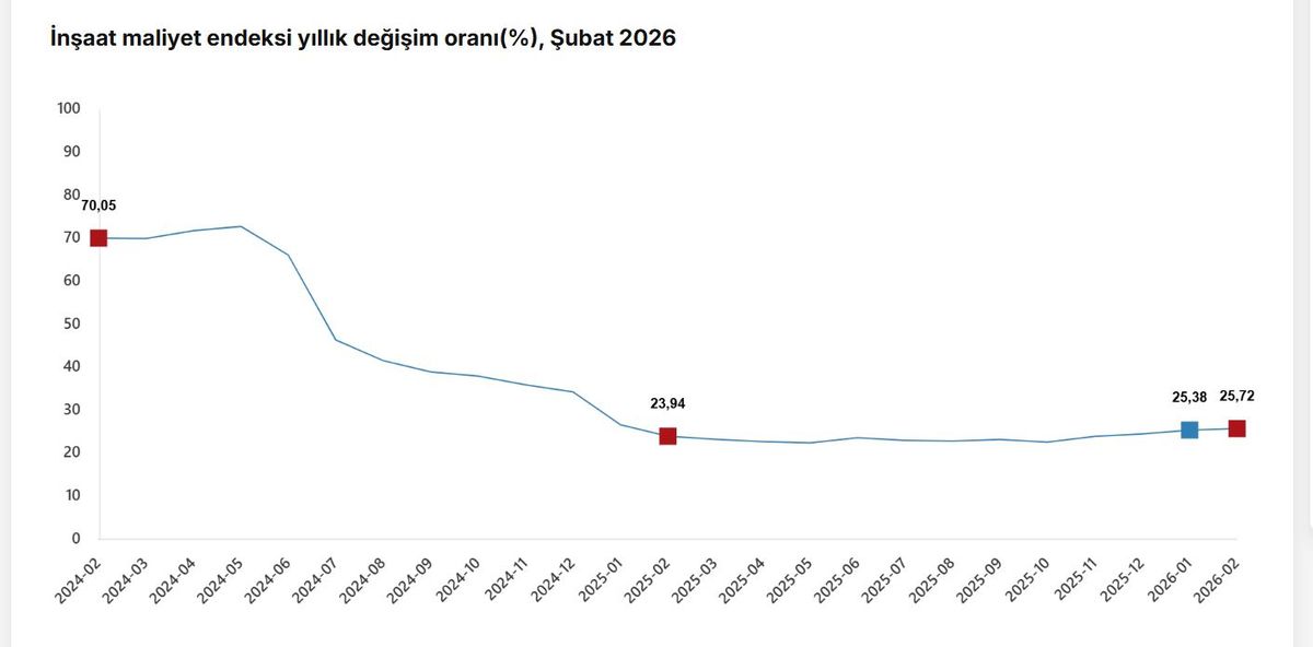 Türkiye İstatistik Kurumu (TÜİK), Şubat 2026 itibarıyla inşaat maliyetlerinde önemli bir artış olduğunu duyurdu. Açıklamalara göre, inşaat...