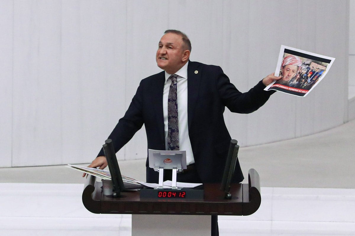Karakaş, Barzani’nin fotoğrafını yırtıp yere attı.