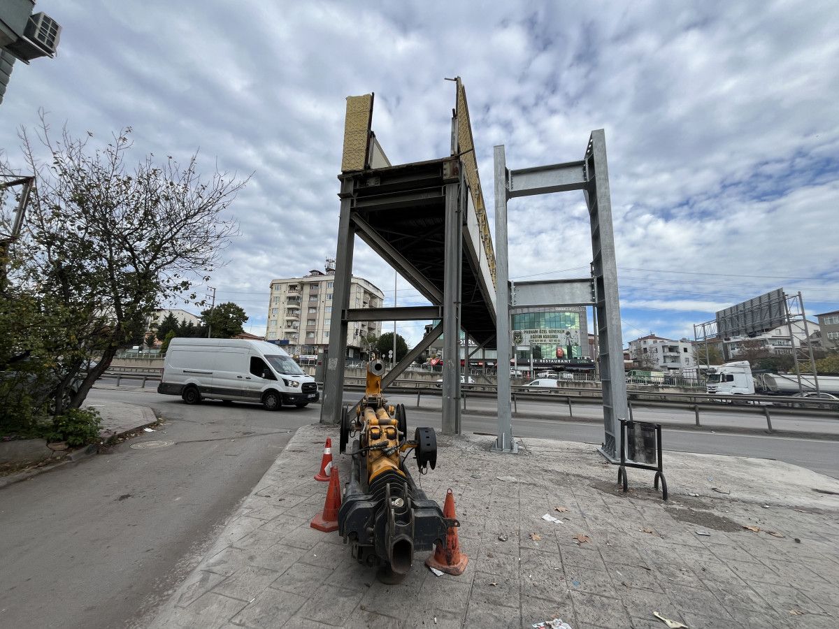 Yaya geçişine kapatılan üst geçidin, parçalara ayrılıp bulunduğu yerden tamamen kaldırılma çalışmaları ise sürüyor. Çalışmalar sürerken, yıkılacak üst geçidin 1 metre uzağına yapılacak yeni üst geçidin Yeniyalı ve Barbaros Mahallesi kısımlarındaki taşıyıcı ayakları yapıldı.