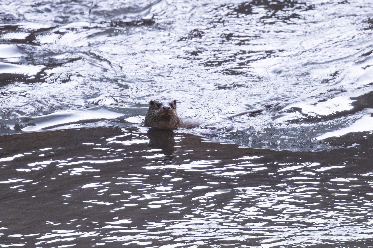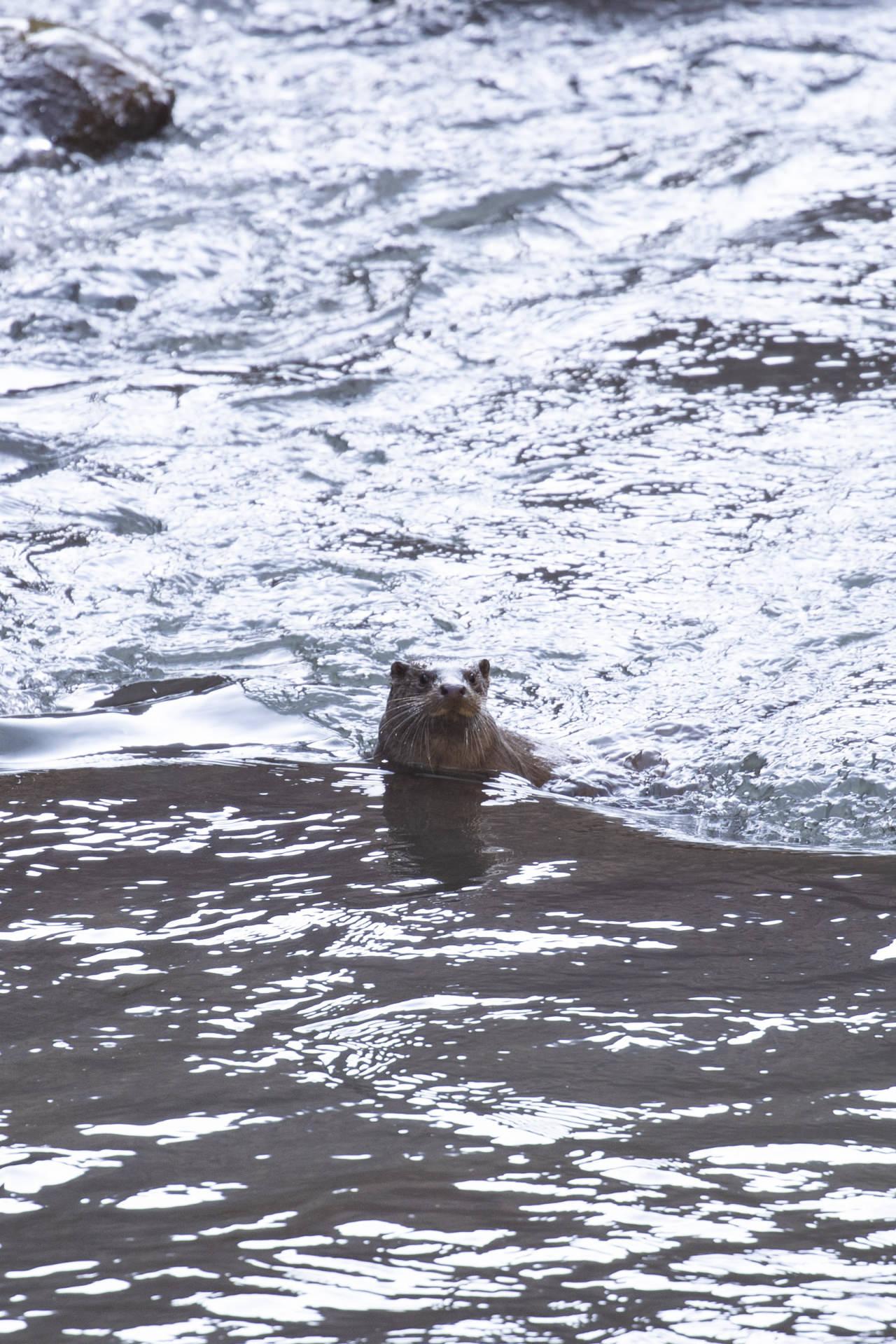 Bir süre başını su yüzeyine çıkararak çevreyi izleyen su samuru, daha sonra kaya oyuğuna girerek gözden kayboldu.