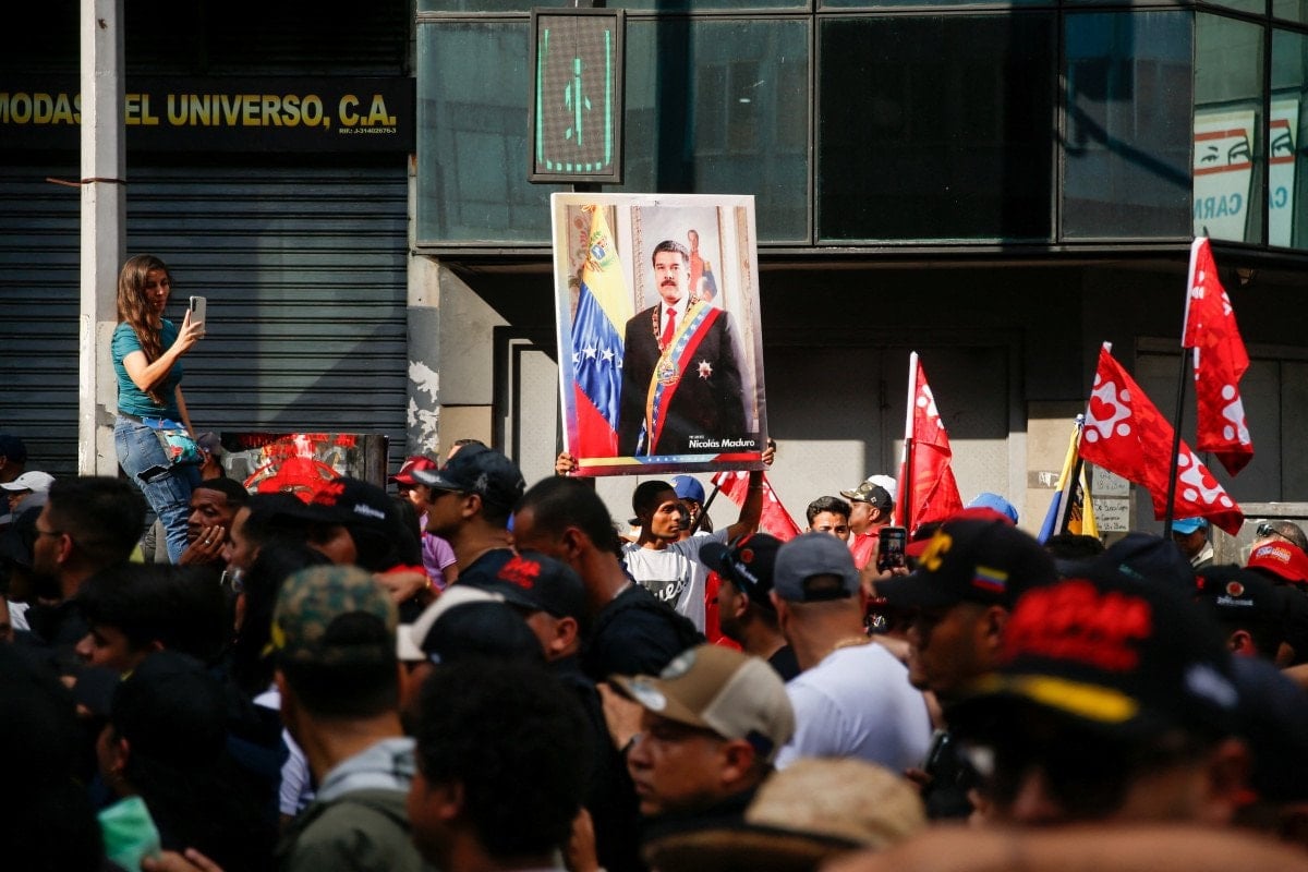 Maduro’yu destekleyenler, ABD’nin askeri müdahalesine ve liderlerinin alıkonulmasına karşı pankartlar taşıdı ve “Venezuela kararlı bir şekilde mücadele ediyor”, “Onu (Maduro) geri istiyoruz”, “İşçi sınıfı başkanımızı geri verin”, “Egemenlik pazarlık konusu değildir” ve “Maduro’ya her zaman sadığız” şeklinde sloganlar attı.